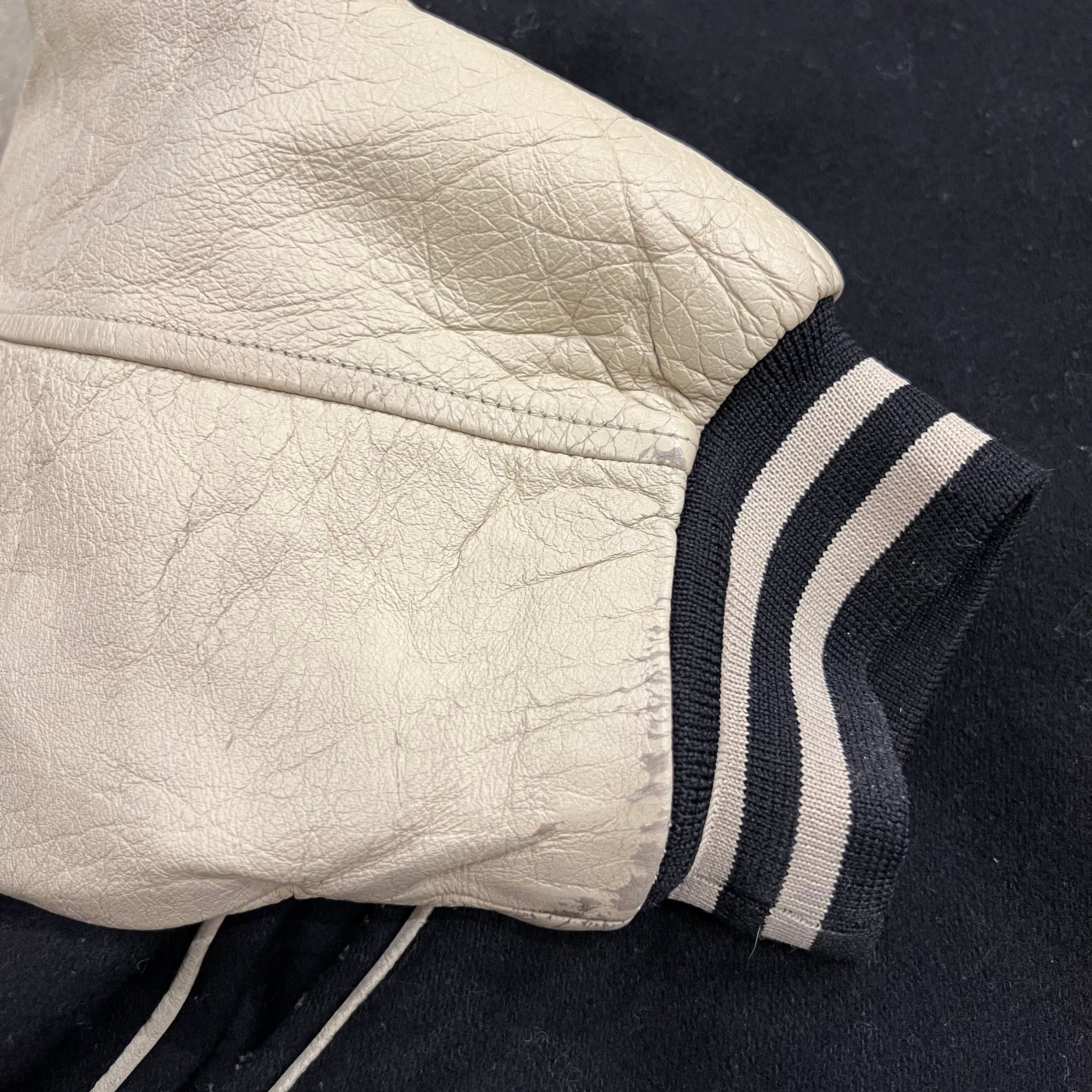 袖レザースタジャン
